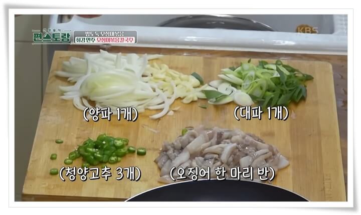 [출처 ; KBS 편스토랑, 류수영 오징어 볶음 맛있게 만드는법]