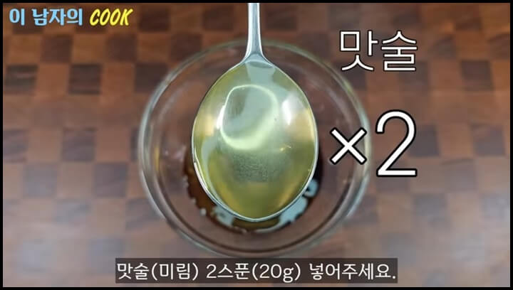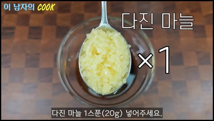 5) 잡맛을 제거할 맛술 2스푼과 다진 마늘 1스푼도 넣어줍니다.