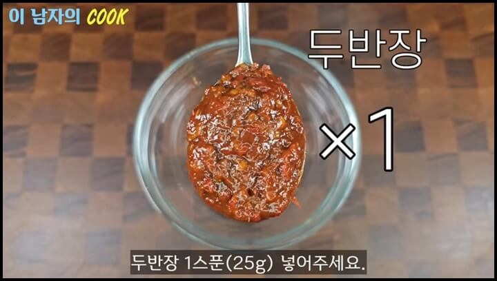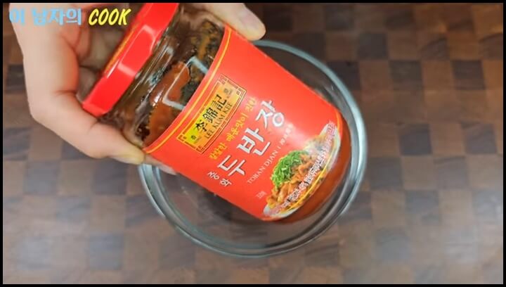 1) 맵고 짜고 감칠맛이 잘 어우러진 두반장을 준비하고, 1스푼을 넣어줍니다.