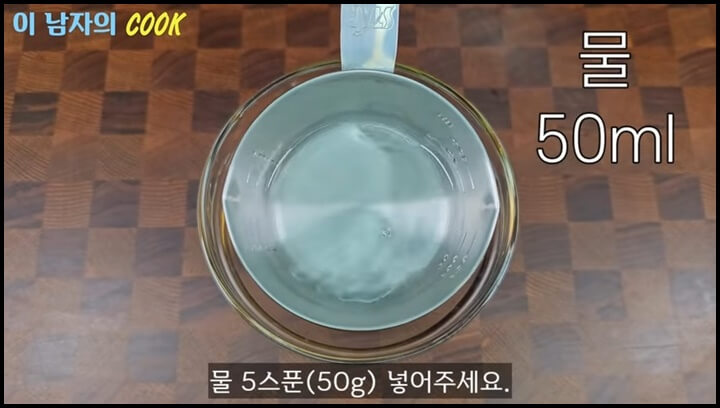 6) 물 50ml를 넣고 골고루 잘 섞어줍니다.