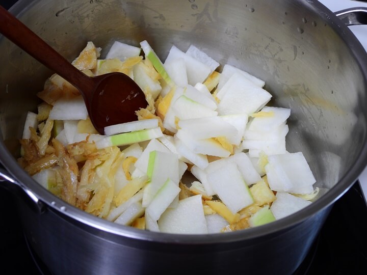 3. 황태국 끓이는 방법 - 황태와 무 볶아주기
