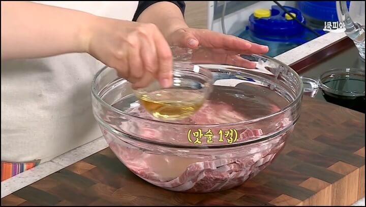 칼집 낸 la갈비는 그릇에 모두 담고 생수 8컵과 맛술 1컵을 넣어서 20분 정도 핏물을 빼 줍니다. 이렇게 20분 정도 담가두면 연육이 되면서 핏물도 쫙 빠져서 맛있게 만들 수 있는데, 맛술을 같이 넣어서 핏물을 빼면 육즙이 빠져나가는 것을 막아줄 뿐 아니라 잡내도 잡아줄 수 있습니다.