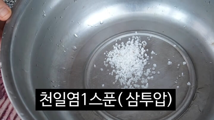 소금물에 뼛가루만 털어내는 정도로 씻어서 건져줍니다.