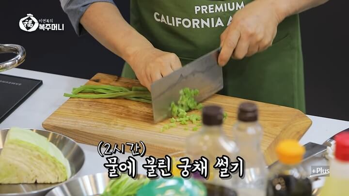 궁채라고 상추대가 있는데 이것은 인터넷에서 양을 조절해서 주문이 가능합니다. 궁채를 2시간 정도 물에 불린 후 잘게 썰어줍니다. 잘게 썬 궁채를 간장소스에 함께 넣어줍니다.