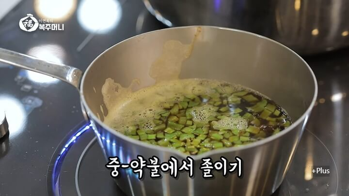 중약불에서 졸여줍니다. 졸이는 정도는 간을 봐서 자신의 입맛에 맞춰 졸여주면 됩니다.