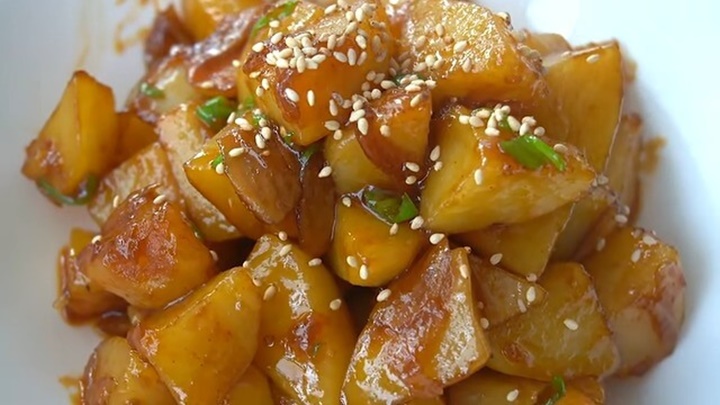 접시에 담아 통깨 솔솔 뿌려주면 완성입니다. 부서지지 않고 쫀득쫀득하면서 겉은 쫄깃, 속은 포슬한 감자조림이라 맛이 끝내주는 감자조림입니다. 감자조림 맛있게 만드는법대로 만드시면 쫀득쫀득 맛있는 감자조림을 맛보실 수 있을 거예요.