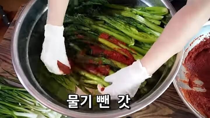 6. 갓김치 맛있게 담그는법 - 양념에 버무리기