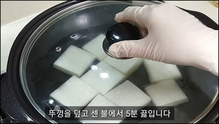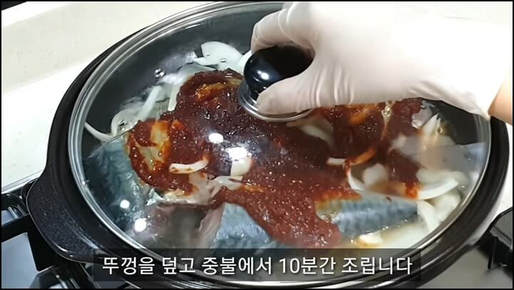 뚜껑을 덮고 중불에서 10분간 조립니다.