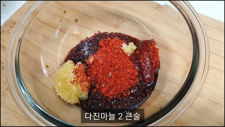 된장 1큰술, 진간장 4큰술, 물엿 2큰술, 매실 1큰술, 고춧가루 3큰술, 고추장 1큰술, 다진 마늘 2큰술, 다진 생강 1/2큰술, 청주 1큰술, 후추 톡톡 넣어서 골고루 잘 섞어줍니다.