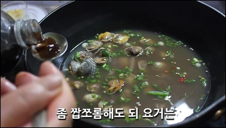 꼬막에서 나온 짭짤한 맛이 배었기 때문에 간은 국간장으로 조금만 해주면 됩니다. 국간장 1~2 숟갈만 넣어서 간을 맞춰줍니다.