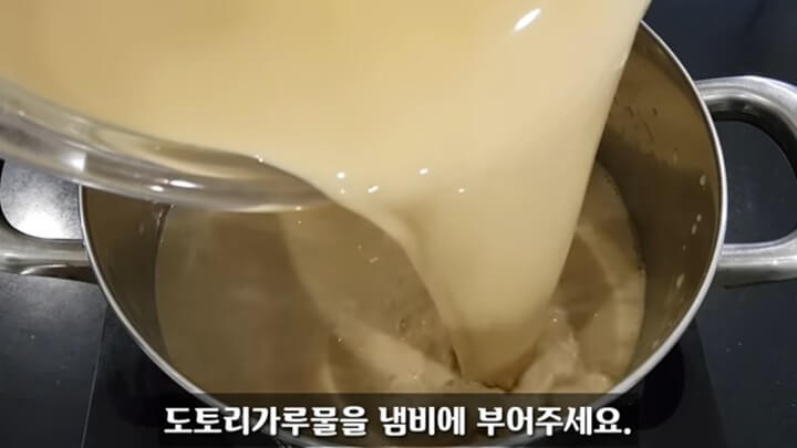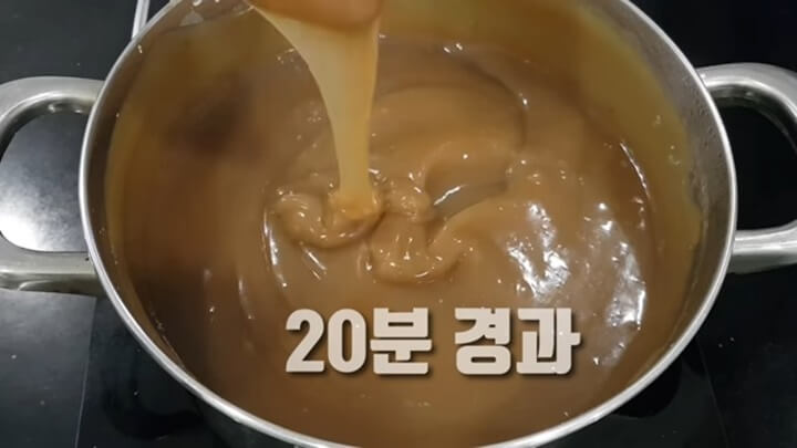 4. 도토리묵 만드는법 - 약불에서 20~30분 끓이기
