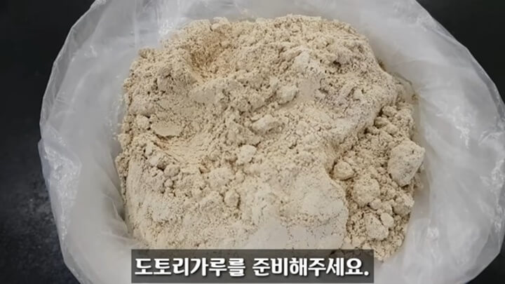 도토리가루를 준비합니다. 도토리가루는 마트나 시장에서 손쉽게 구입할 수 있습니다.