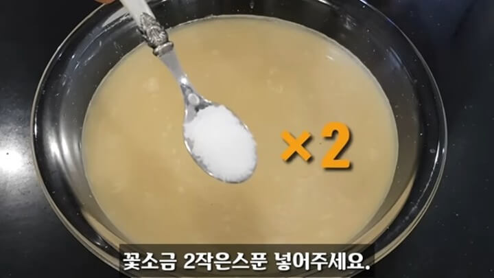 간을 맞춰주기 위해 꽃소금 2 작은스푼을 넣어줍니다.