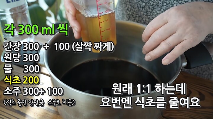 5. 식초의 양을 100ml 줄이고 대신 소주로 100ml 채워주기