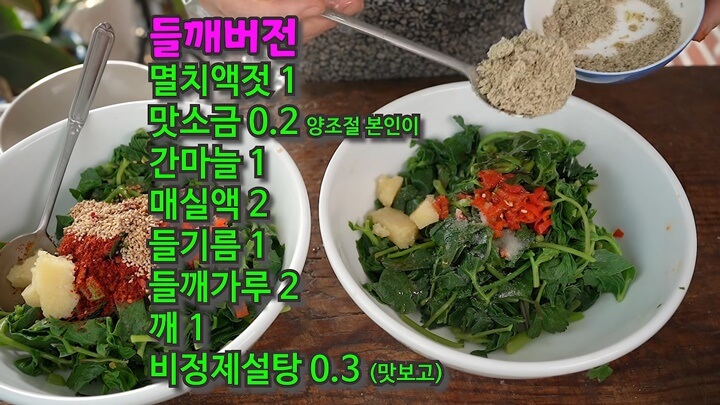 들깨버전 방풍나물 무침에는 멸치액젓 1숟갈을 넣고, 맛소금 0.2숟갈 정도 넣어주는데 소금 간을 하면 더 맛있다고 해요. 소금 양은 입맛에 맞춰 간을 맞춰 조절하세요.