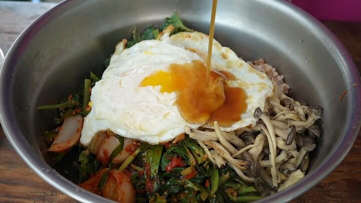 양푼이에 밥 넣고, 방풍나물 무침 두가지 버전을 고루 넣은 뒤 버섯, 양파김치, 계란 후라이, 참기름까지!! 고추장 한 숟갈 넣고 비벼 먹으면 완전 꿀맛이에요! 다른 나물 필요없이 방풍나물 무침 하나면 끄읕!!!