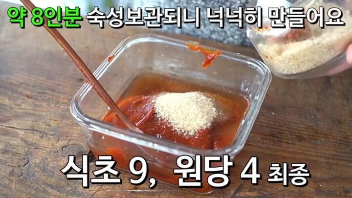 비빔국수 양념장은 약 8인분 정도의 양으로 넉넉하게 만들 건데요, 넉넉히 만들어서 냉장고에 보관하면 숙성되어 더욱 맛있어집니다.