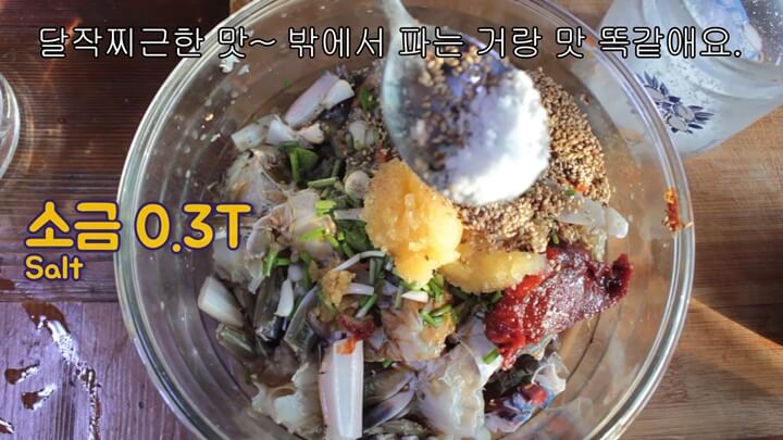 게가 작지만 큰 것 4마리 분량이니 재료란에 나와있는 것처럼 양념을 하면 됩니다.