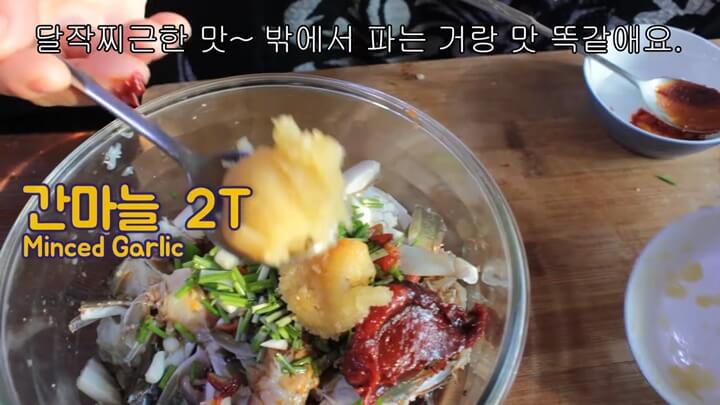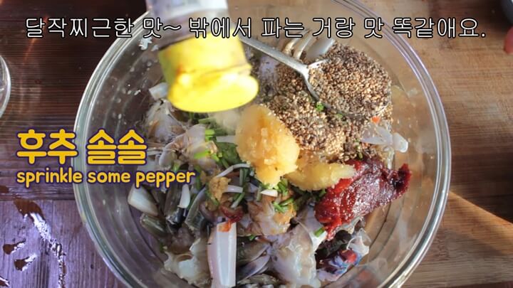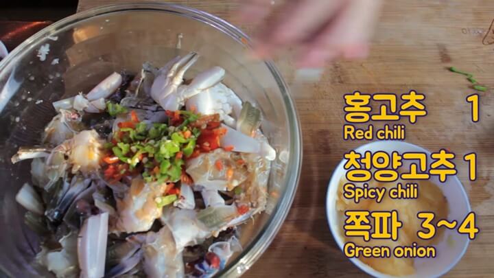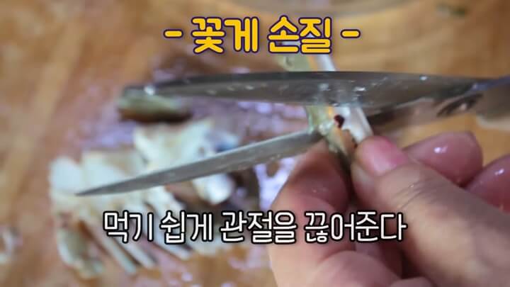 활꽃게로 만들면 더 맛있지만 냉동절단꽃게도 상관없다고 합니다. 냉동게는 얼린 상태에서 양념을 무칩니다.