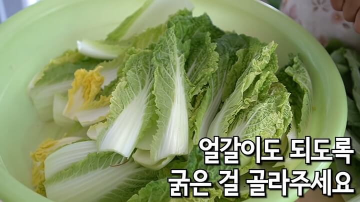 중간 배추는 겉잎은 떼 내고 한 장씩 뜯어주세요. 얼갈이로 담을 때는 얼갈이도 되도록이면 굵은 걸 골라서 담으세요. 너무 가느다란 걸로 담으면 금세 푹 고꾸라져요.