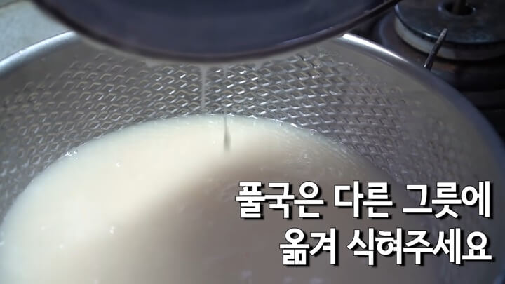 다 끓인 밀가루 풀은 다른 그릇에 옮겨 담아 식혀줍니다.