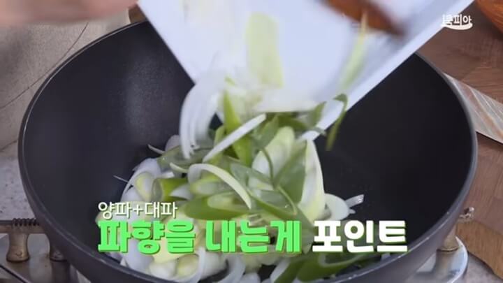 제육볶음 맛있게 만드는법은 이렇게 파향을 내는 것이 포인트입니다. 그래야 고기가 훨씬 더 단맛이 나면서 맛있습니다.