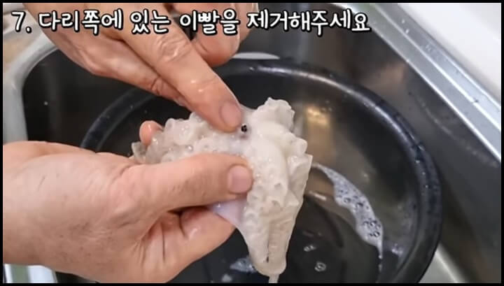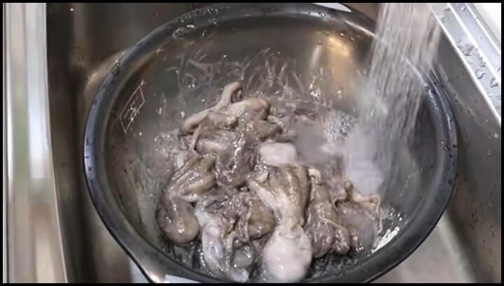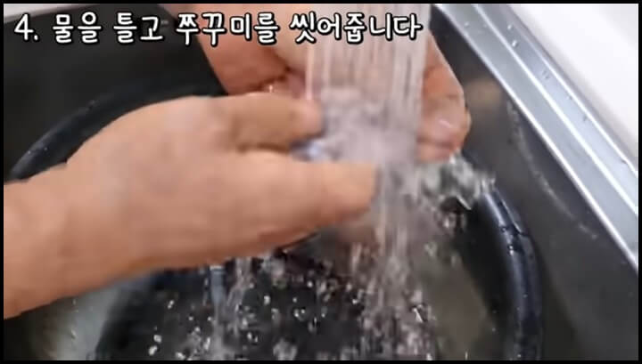 4) 물을 틀어서 쭈꾸미를 씻어줍니다.