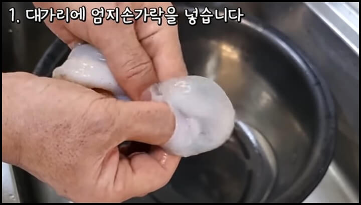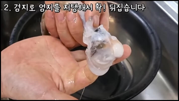 1) 먼저 대가리에 엄지손가락을 넣습니다.