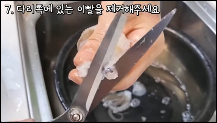 3) 뒤집은 다음 속에 있는 내장을 제거해 줍니다.